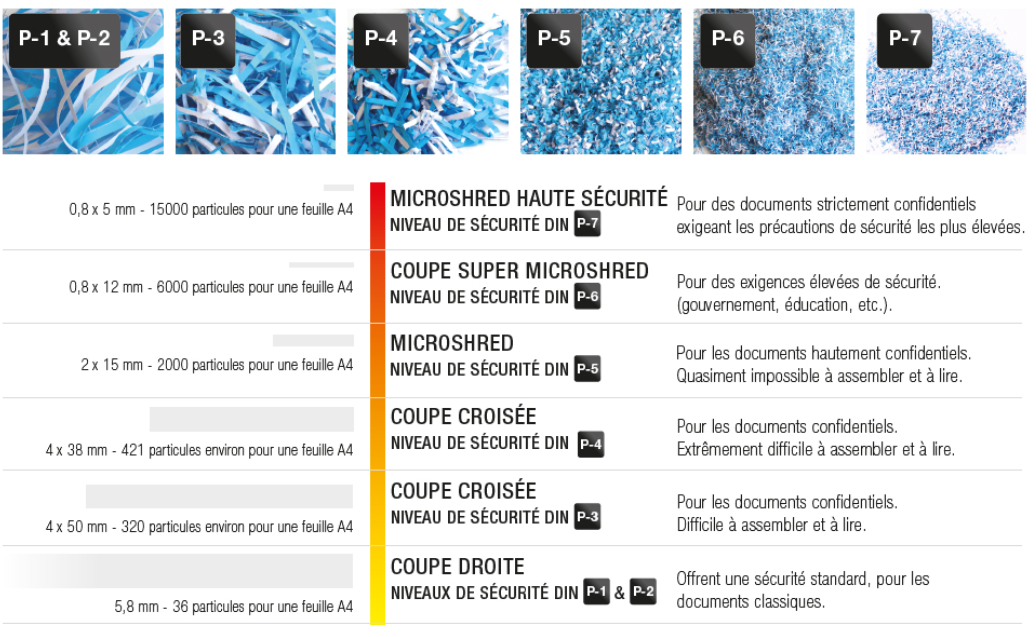 Plus le niveau de sécurité est élevé, plus les particules du papier détruit seront petites